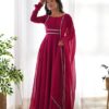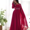 Enhance your wardrobe with a versatile kurta set designed to adapt to various weather conditions. This collection features a stylish range suitable for a variety of occasions, including casual outings, parties, birthdays, beach trips, and summer holidays. The kurta top is designed to be worn separately, providing even more flexibility in styling. Crafted with comfort in mind, this kurta set is perfect for all-day wear, ensuring you feel good while looking great. Anarkali Kurti with Pant and Embroidered Dupatta