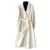The coat is available in classic and timeless colors—black and white. Its solid color design allows it to pair easily with a wide range of outfits, from casual jeans and boots to more formal dresses and heels. Whether you’re heading to work, going for a walk, or attending a special occasion, this wool coat will keep you looking polished and feeling warm.